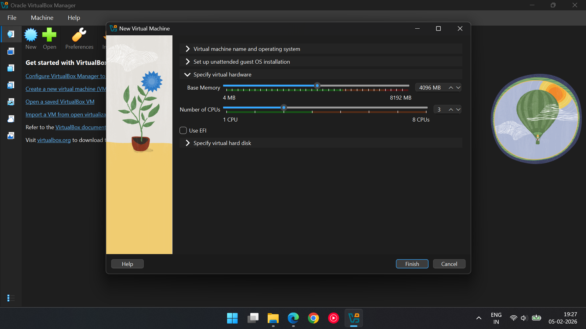 · Click on Specify virtual hardware: