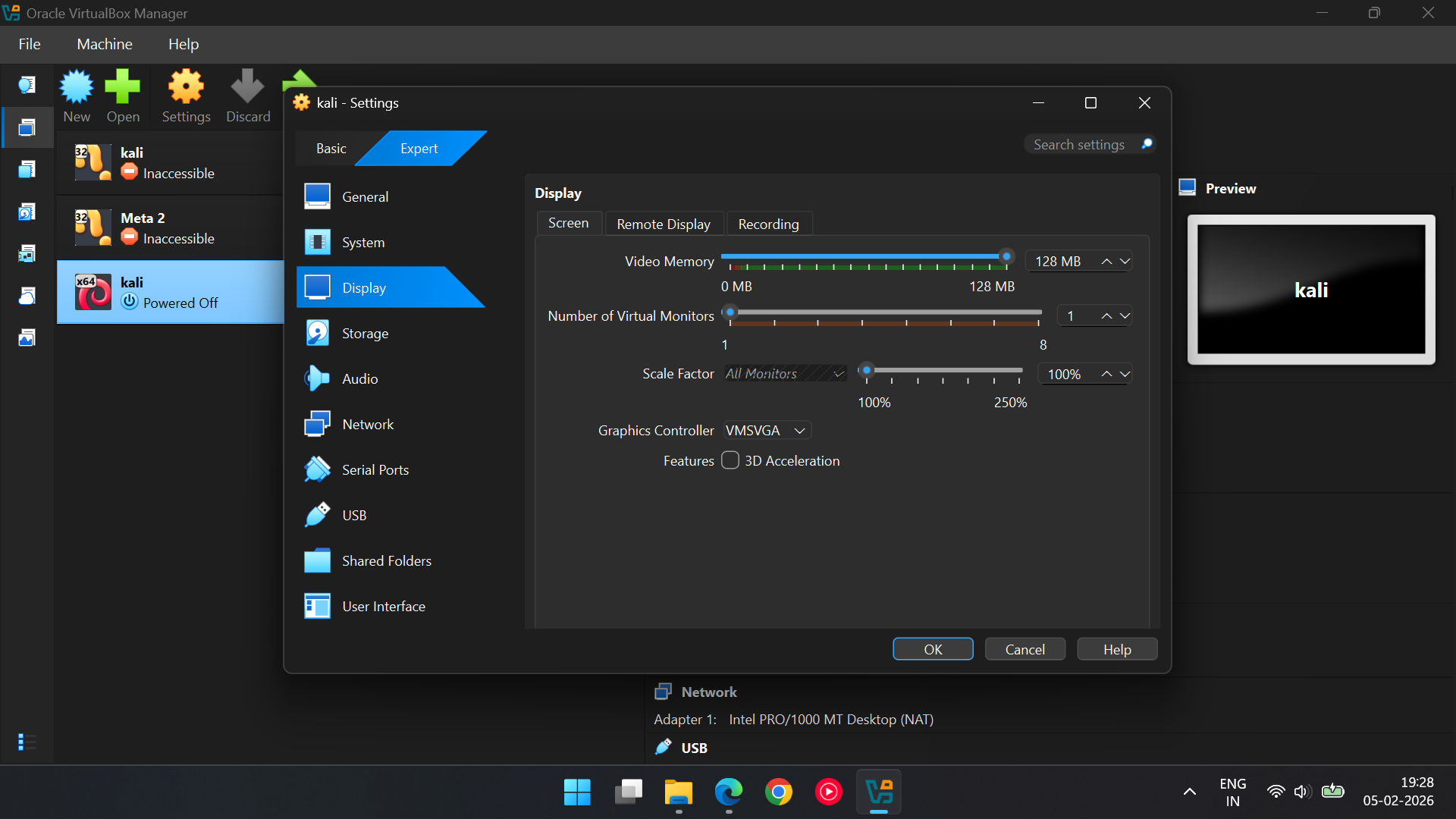 · Display > Video memory:128 MB.