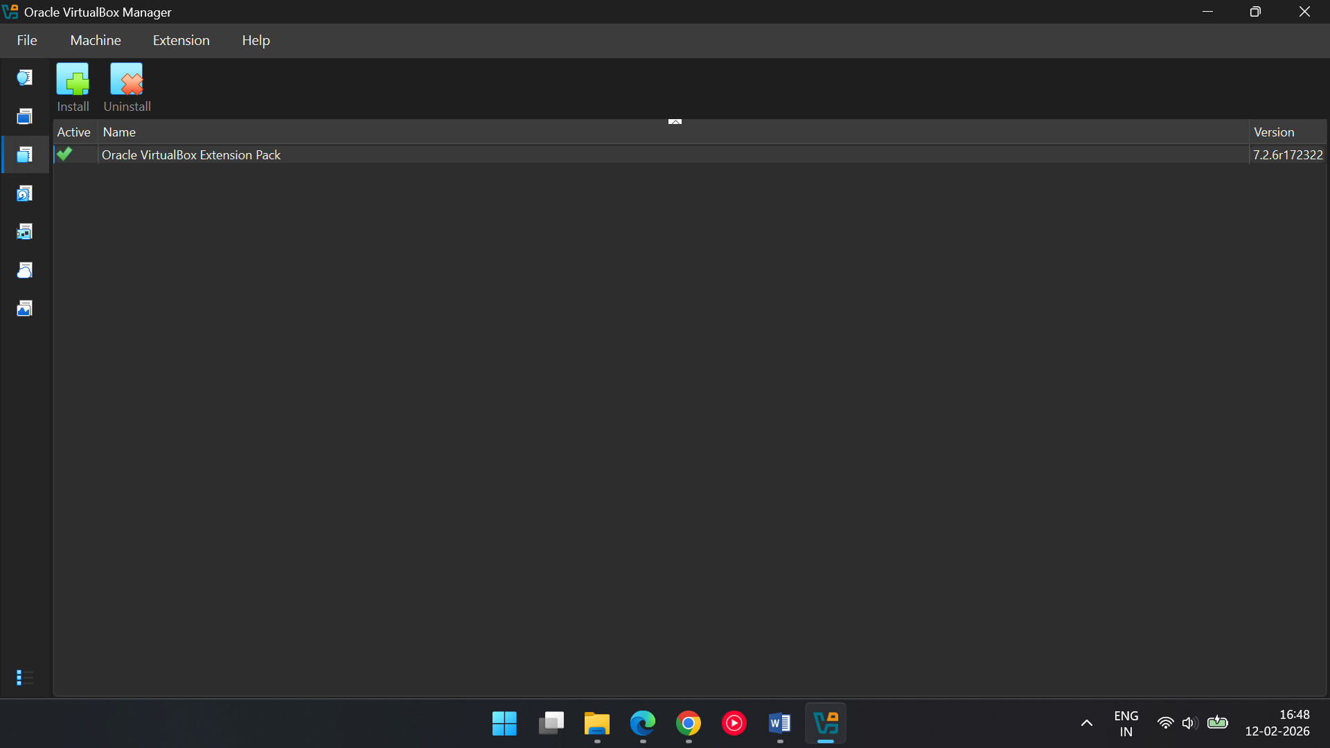 · Extensions > Install > select Oracle Virtual Box Extension Pack > Install > agree terms and Condition.
