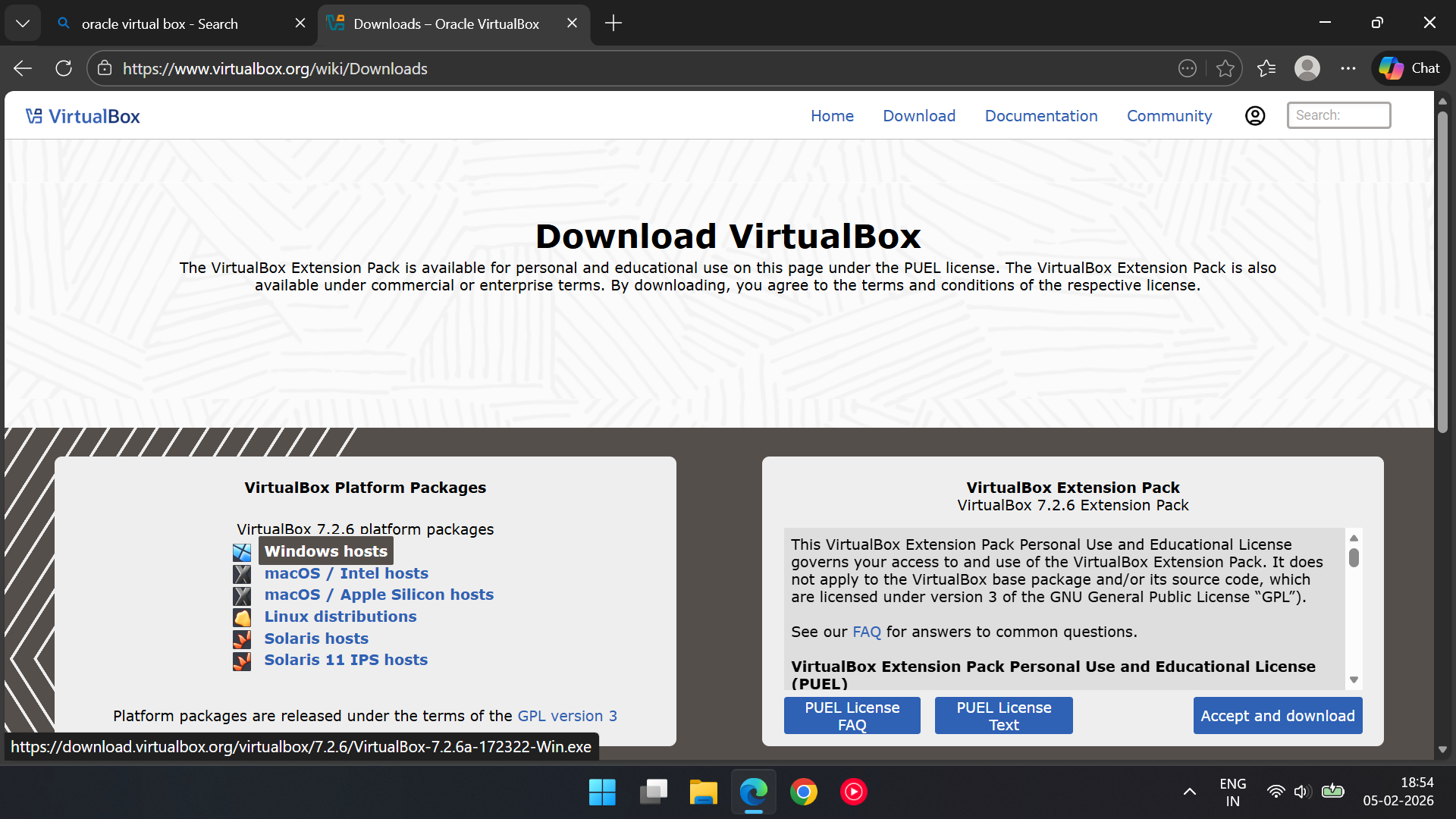 computer’s OS) > In Virtual Extension pack > click on Accept and