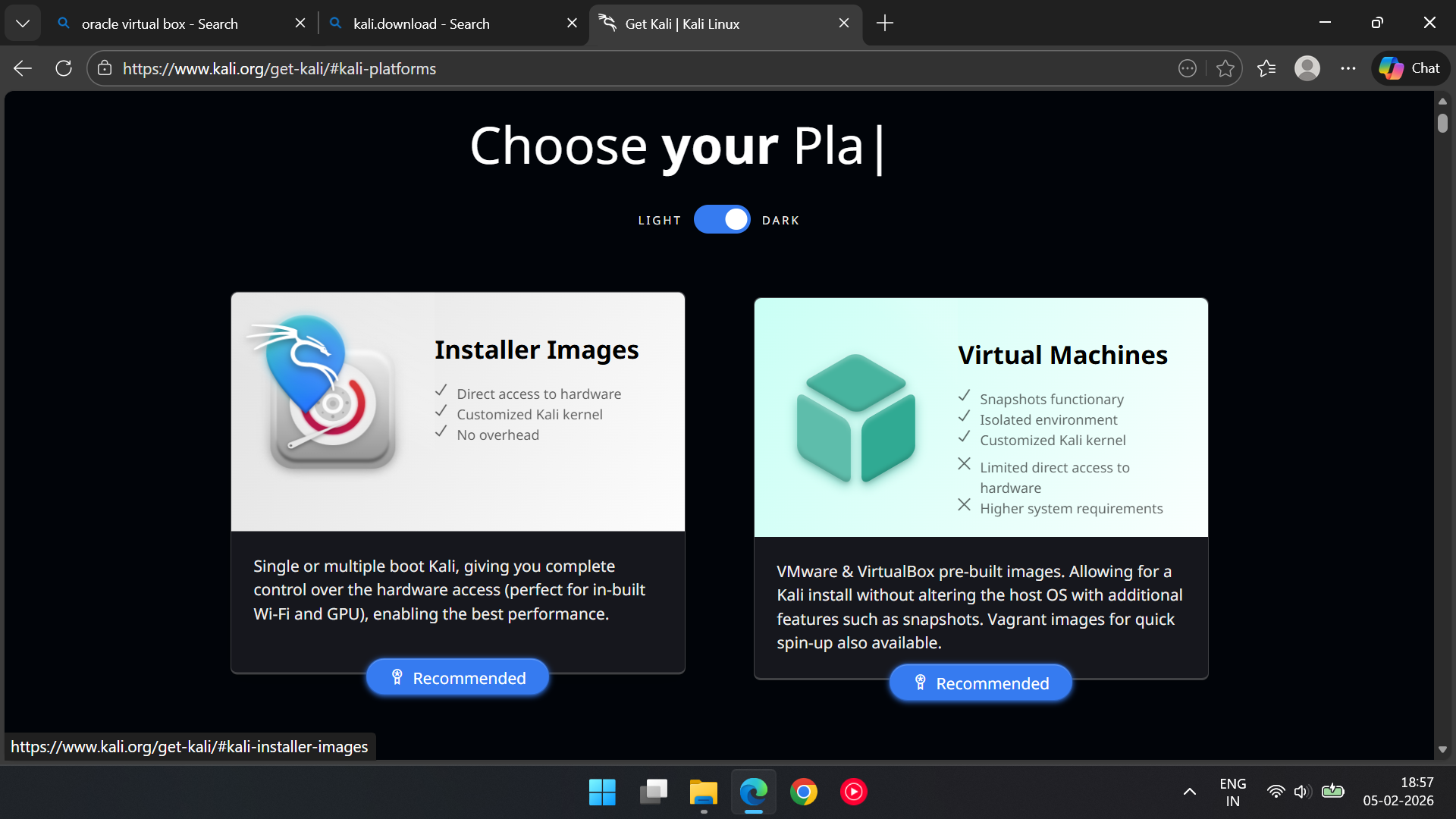 · The Kali Linux ISO: This is the "brain" of Kali. Download the Installer Image (it’s a chunky 4.2GB)In Browser.